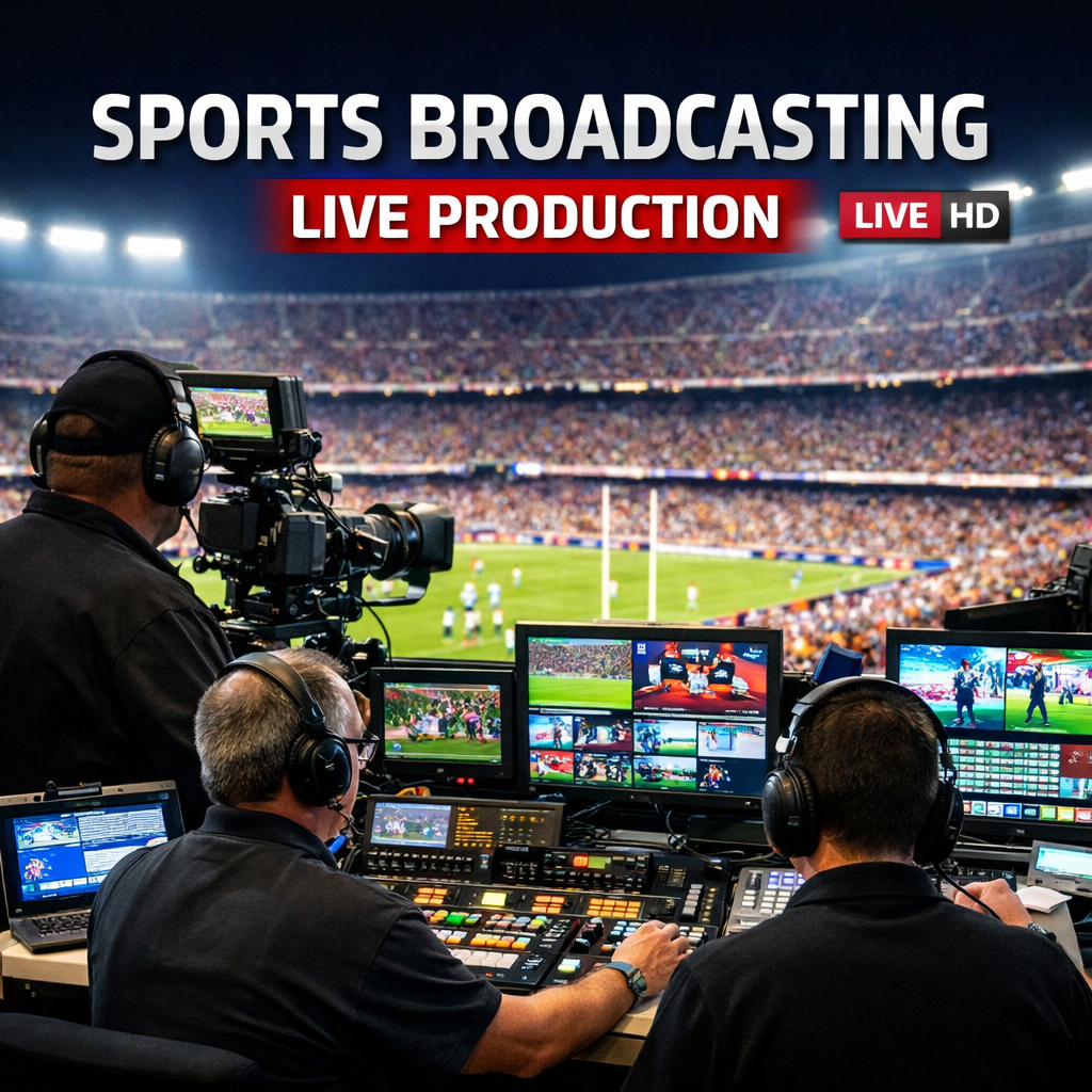 Professional live and recorded sports broadcasting with multi-camera setups and seamless transmission quality.